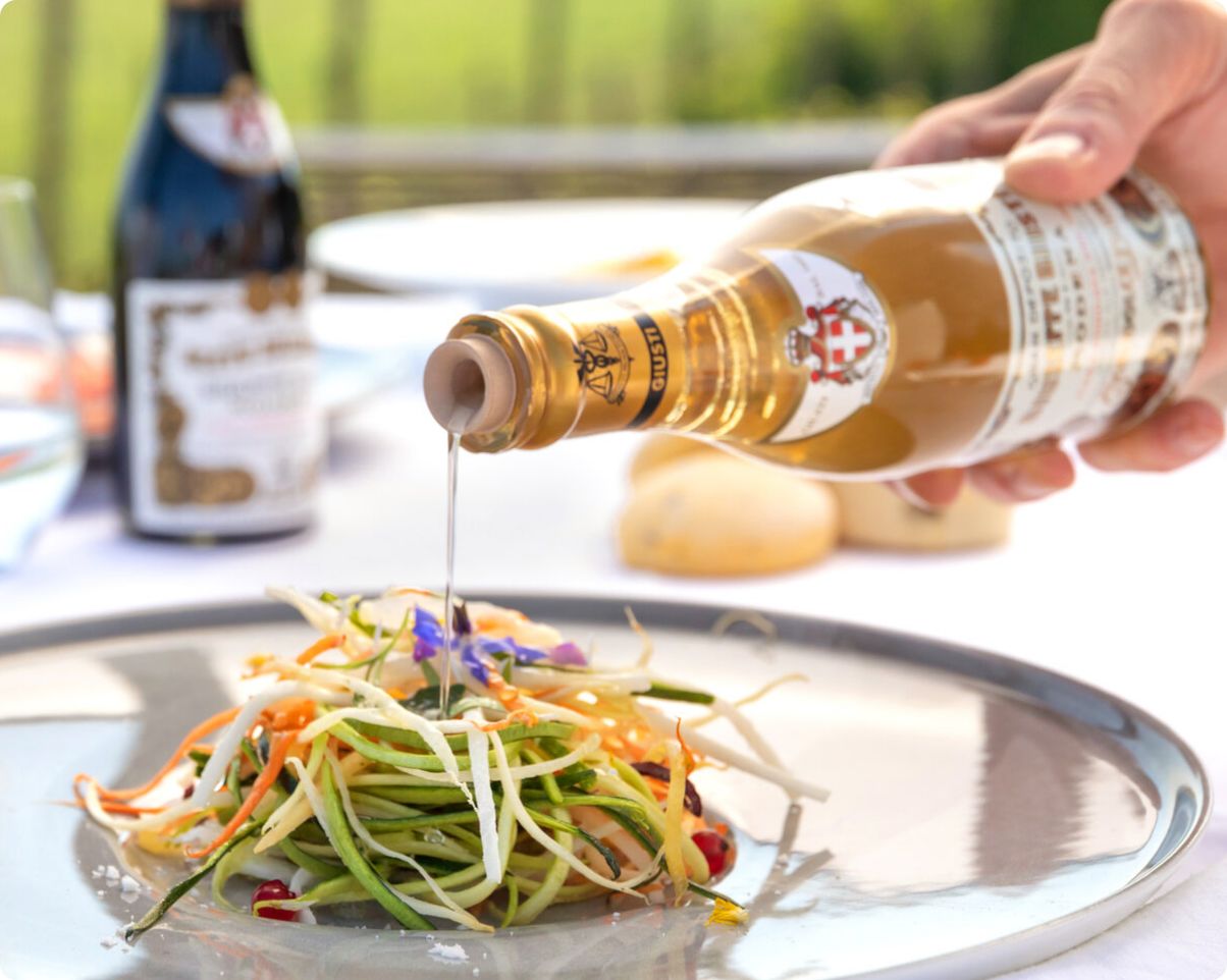 Sicher kennst Du den klassischen, dunklen Balsamico. Seine Geschwister, verschiedene Condimento-Sorten, musst Du auch probieren. Sie schenken deinen Gerichten unglaublich fruchtige Würze.
