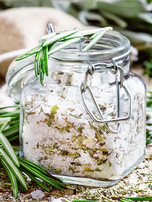 Verwendest Du getrocknete Kräuter, lautet das Mischungsverhältnis: etwa 20% getrocknete Kräuter, 80% Salz.