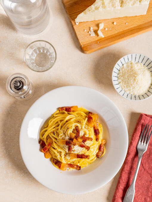 Spaghetti, Speck, verschlagene Eier und Käse: Das ist die klassische Carbonara. Die Meinungen über Ursprünge des Gerichts gehen auseinander. Stammen die Spaghetti aus dem Apennin, aus Neapel oder sind sie gar eine Erfindung amerikanischer Soldaten?