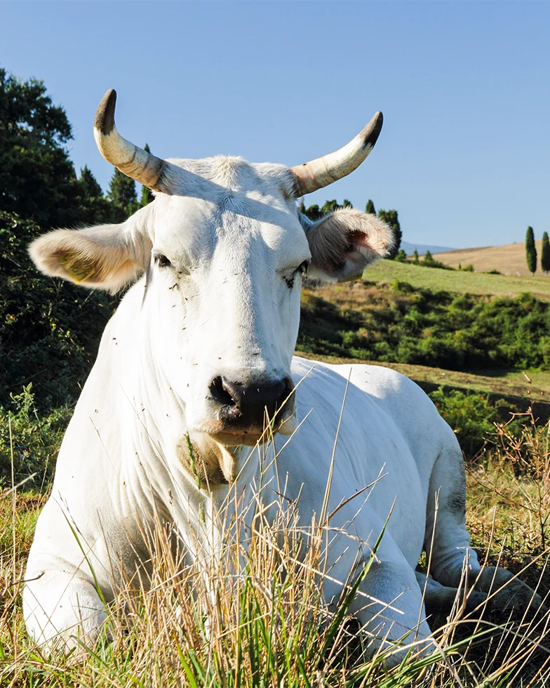 Das Chianina-Rind ist mehr als nur eine Rinderrasse – es ist ein Stück italienischer Kulturgeschichte. Mit seinem cremeweißen Fell, seiner imposanten Größe und seiner einzigartigen Fleischqualität zählt es zu den kulinarischen Schätzen der Toskana.