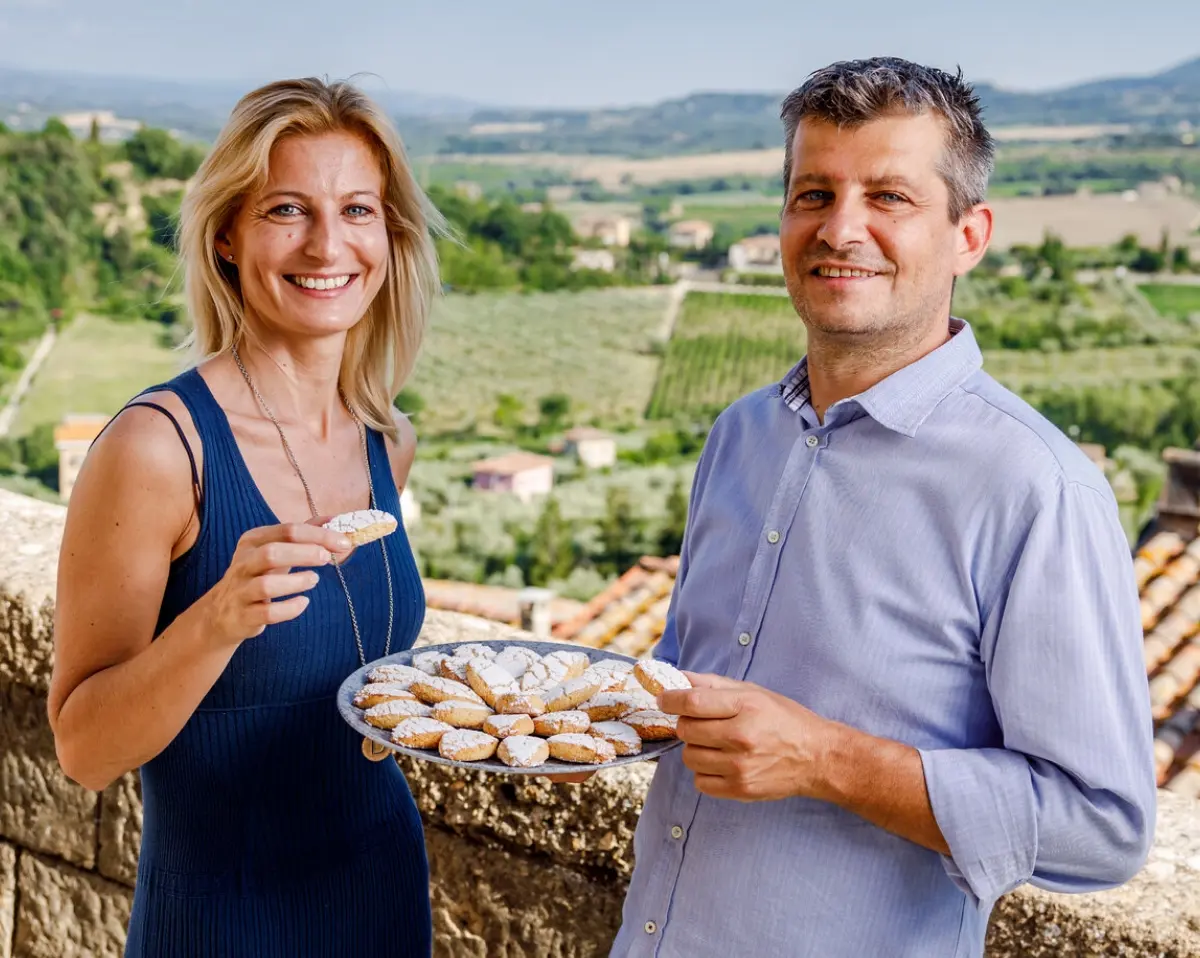 Typisch für diesen klassischen toskanischen Dessertwein ist seine Bernsteinfarbe. Der "heilige Wein" wird vor allem zu den toskanischen Mandelkeksen Prato, auch bekannt als Cantuccini, gereicht. Sein harmonischer Geschmack schmeichelt dem Gaumen samtig. Der Vin Santo ist ein Wein, der für Gastfreundschaft und geselliges Beisammensein steht.