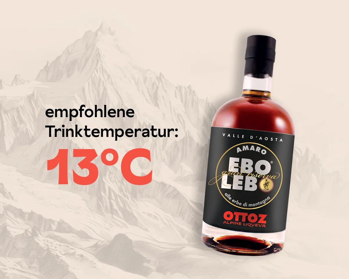 Tauche mit diesem goldenen Elixier in die sinnliche Welt der italienischen Digestifs ein. Nach einem gehaltvollen Essen ist Ebo Lebo die perfekte Ergänzung. Serviere ihn bei einer Temperatur von etwa 13 °C, um sein volles Potential zu entfalten. Der Kräuterlikör-Klassiker lässt sich entweder pur, auf Eis, mit Zitrone oder in einem Cocktail genießen.
