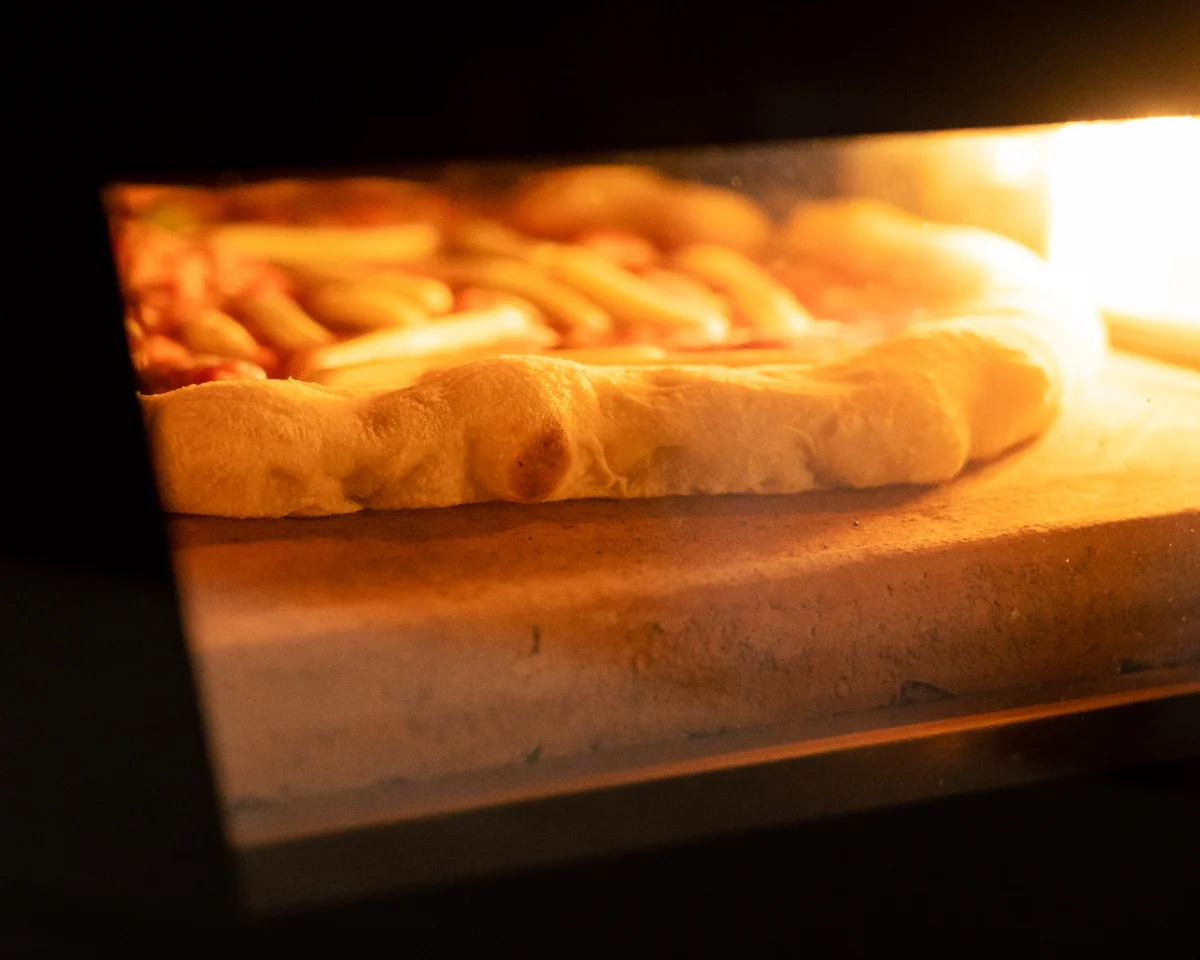 Die Tür der Effeuno-Öfen besteht aus dreifach verglastem, gehärtetem Glas. Diese spezielle Konstruktion sorgt dafür, dass die Hitze optimal gespeichert wird, während die Außenseite angenehm temperiert bleibt. Dadurch wird das Risiko von Verbrennungen deutlich reduziert. Gleichzeitig ermöglicht die klare Verglasung jederzeit eine ungehinderte Sicht auf die Pizza, ohne dass die Tür geöffnet werden muss. Viele günstigere Öfen bieten keine so effektive Isolierung, wodurch mehr Wärme verloren geht und der Energieverbrauch steigt.