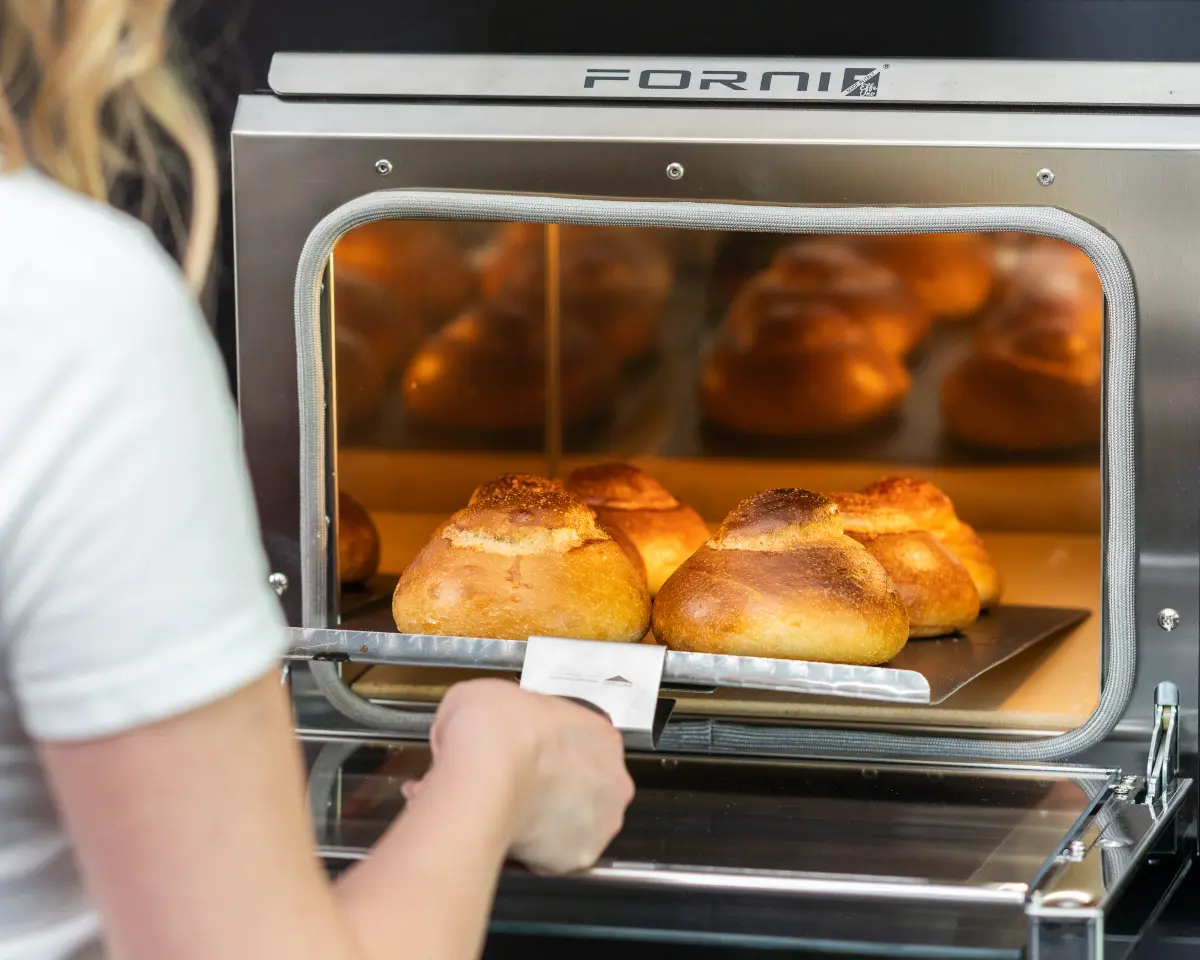 Während des gesamten Backvorgangs zeigt das Display der digitalen Effeuno-Öfen die aktuelle Backphase an. Visuelle Anzeigen und akustische Signale informieren genau darüber, in welchem Stadium sich der Garprozess befindet. So lässt sich der Backvorgang leicht überwachen, ohne die Tür zu öffnen oder ständig manuelle Kontrollen durchführen zu müssen.