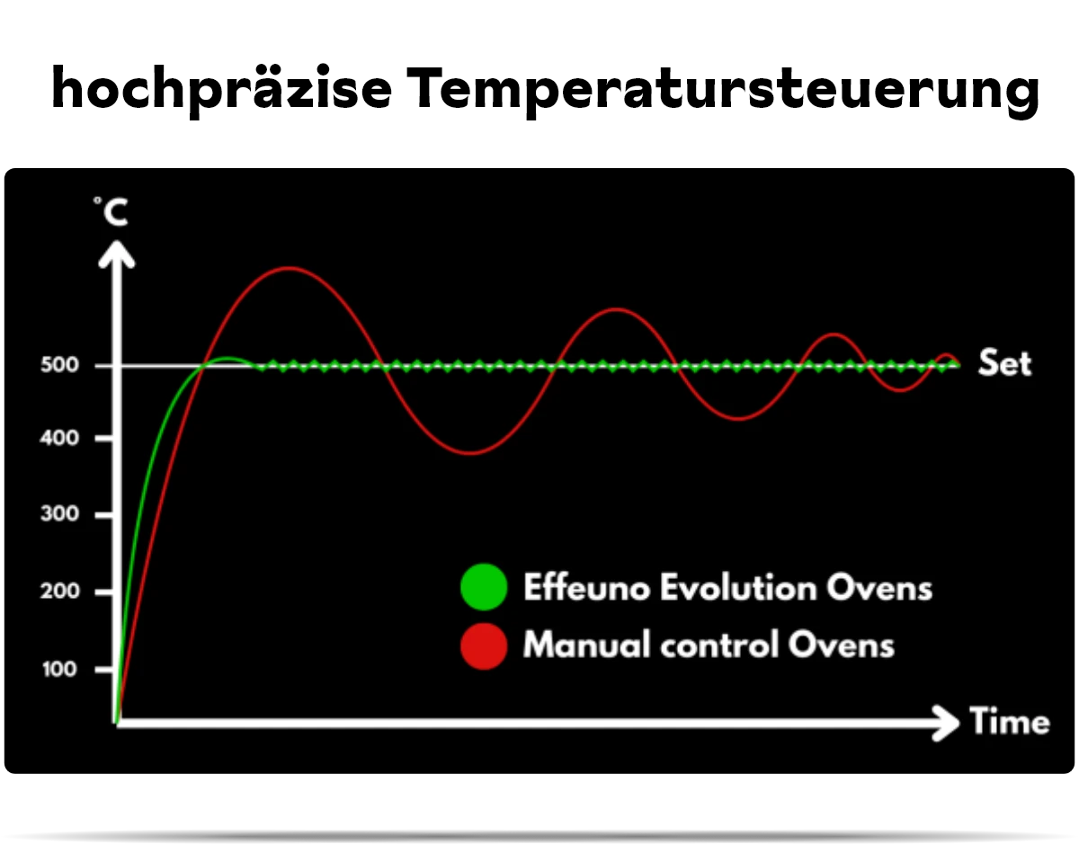 Effeuno-Öfen überzeugen durch eine hochpräzise Temperatursteuerung. Die digitalen Modelle sind mit der fortschrittlichen PID-Technologie ausgestattet, die eine besonders exakte Kontrolle der Heizleistung ermöglicht.
