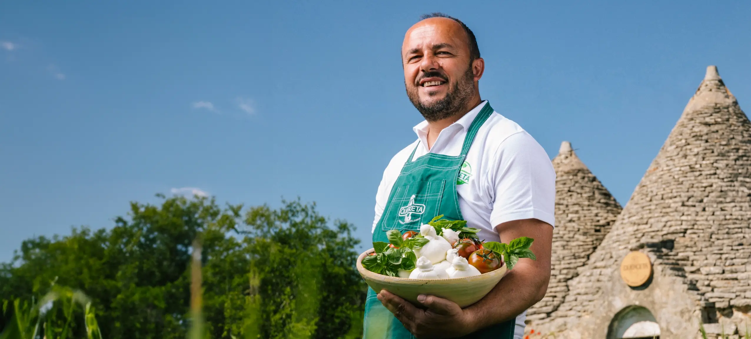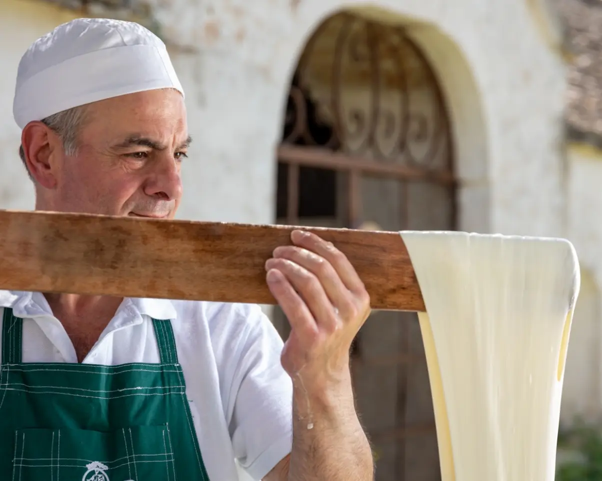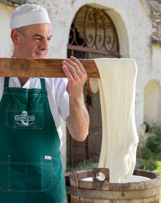 Hier, in der Nähe von Bari, findest Du den Bio-Bauernhof Querceta. Gianluca Gigante führt ihn mit Amalia, seiner Frau. Fast alles, was sie für den täglichen Genuss brauchen, stellen sie selber her: vom Getreide über die Milch bis zum Käse und zur Wurst. Ein Schwerpunkt liegt auf traditionellen Käsesorten wie Mozzarella, Burrata, Ricotta, Scamorza und Provolone.