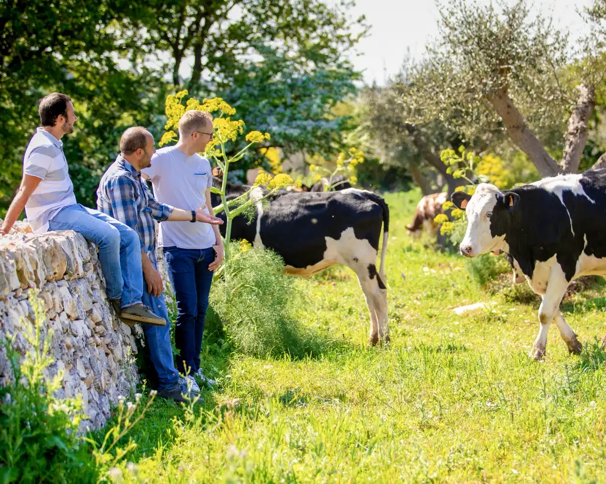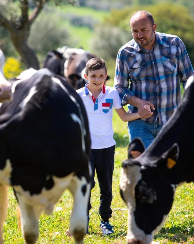Schon Gianlucas Vater und Großvater waren Rinderzüchter. Sie hielten Frisona-Rinder, die sehr viel Milch geben. Gianluca hingegen setzt auf Montbéliard-Rinder. Diese Kühe geben wenig Milch, die aber außergewöhnlich gut schmeckt. Zweimal am Tag werden sie auf dem Hof gemolken.