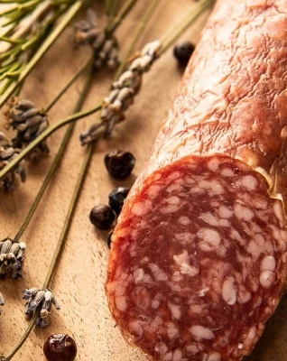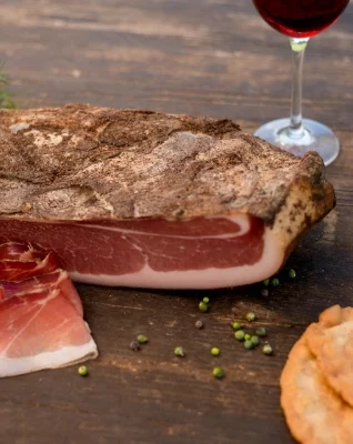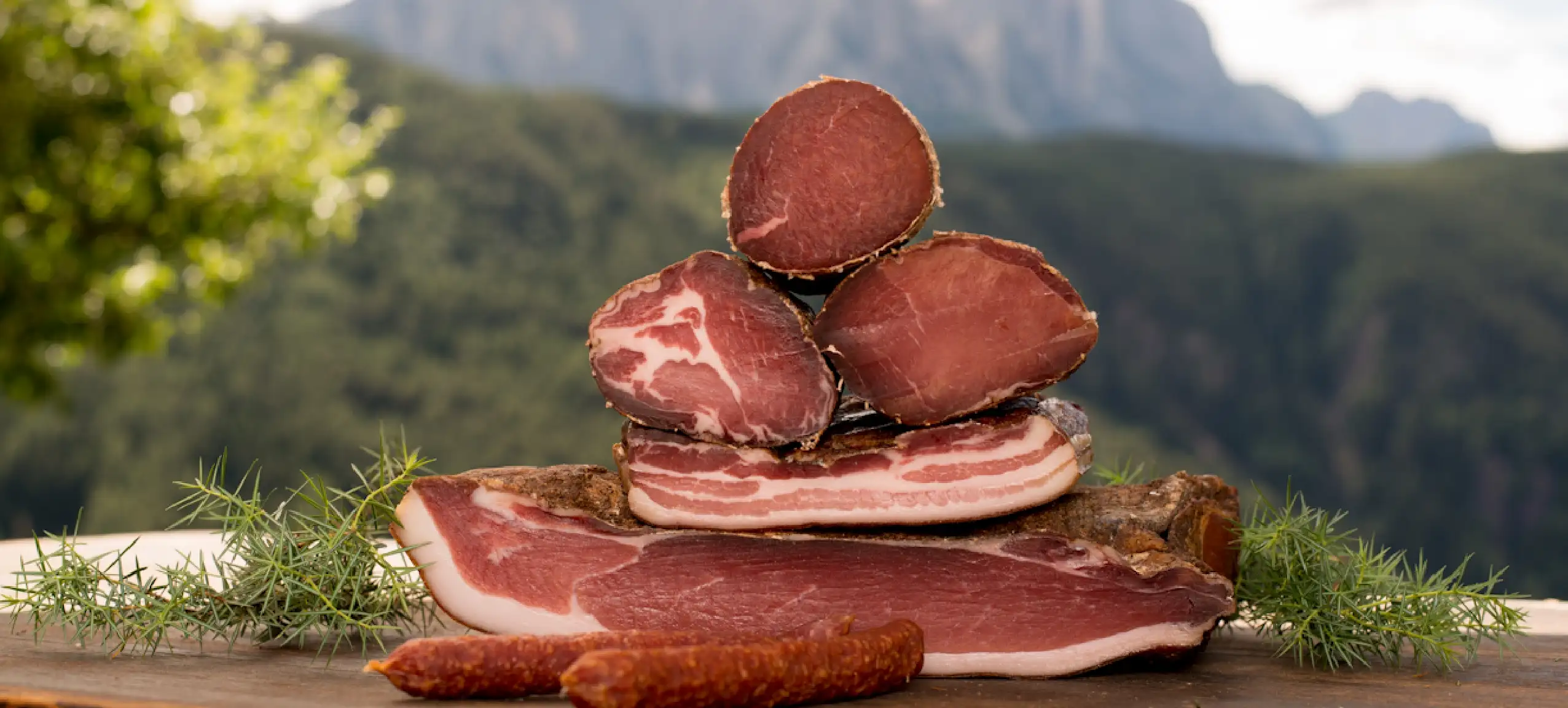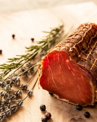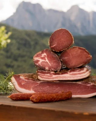 Im Anschluss folgt die milde Kalträucherung, die für den typischen Geschmack sorgt. Danach darf der Speck weitere sechs Monate reifen. Nachts werden dazu die Fenster der Räucherkammer geöffnet, damit die klare Bergluft durchzieht. Dieses besondere Verfahren verleiht dem Schinken nicht nur seinen unverwechselbaren Geschmack, sondern auch seine kräftige Farbe und lange Haltbarkeit.