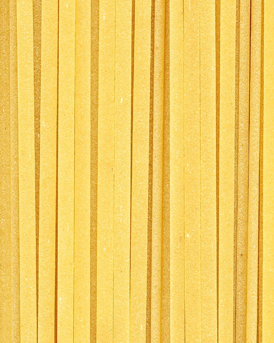 Die flache, leicht ovale Form von Linguine sorgt dafür, dass jede Gabel eine samtige Textur bietet, die leicht auf der Zunge liegt und dennoch genug Struktur für einen angenehmen Biss hat. Diese hochwertige Pasta lässt ihre subtilen Aromen besonders gut zur Geltung kommen.