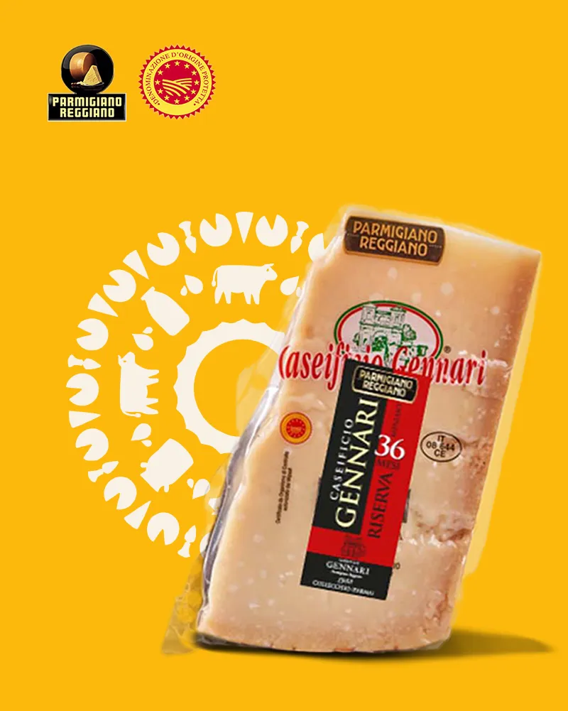 Der Parmigiano Reggiano der Caseificio Gennari kommt aus idyllischen Auen der Poebene, oberhalb von Parma. Er ist mit seiner Reifezeit von 36 Monaten eine echte Rarität. Der im Handel angebotene Parmigiano Reggiano ist meistens nur 12 bis 24 Monate gereift. Noch ältere Käse sind sehr selten zu finden.