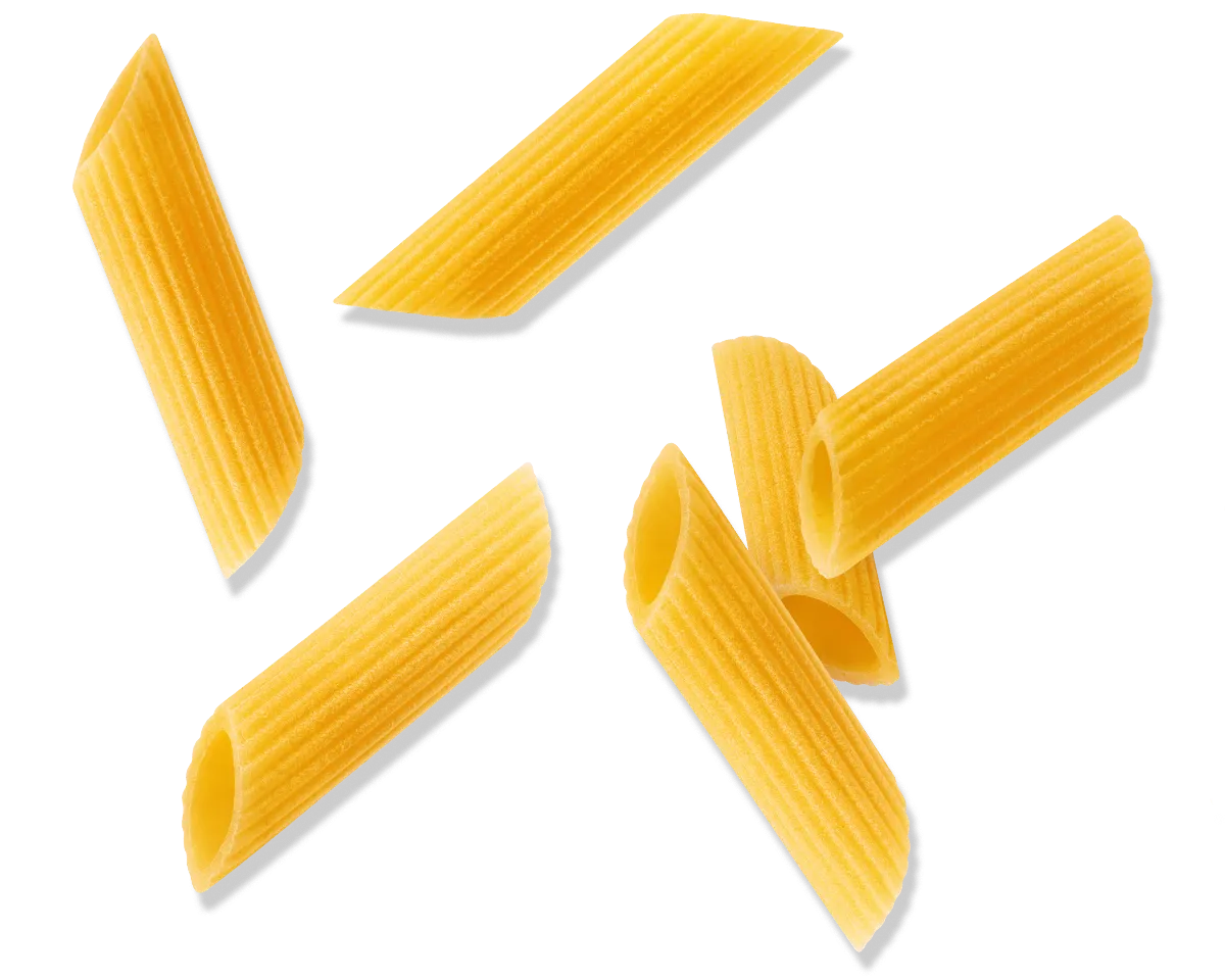 Die röhrenförmige Pasta hat schräg abgeschnittene Enden, die an Schreibfedern erinnern. Daher kommt der Name „Penne“, was auf Italienisch „Feder“ oder „Stift“ bedeutet. „Rigate“ bezieht sich auf die Rillenstruktur der Pasta, die dafür sorgt, dass die Sauce besser haften bleibt.