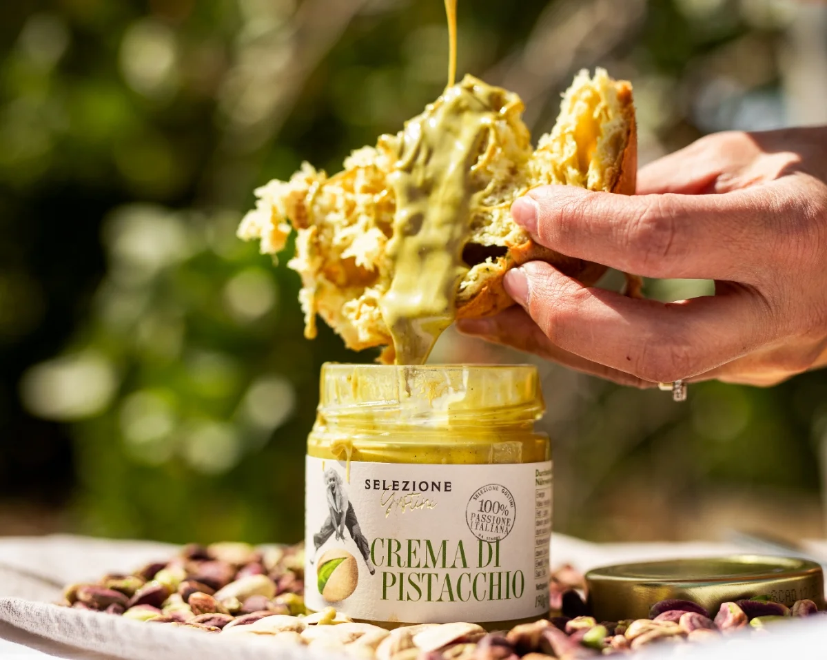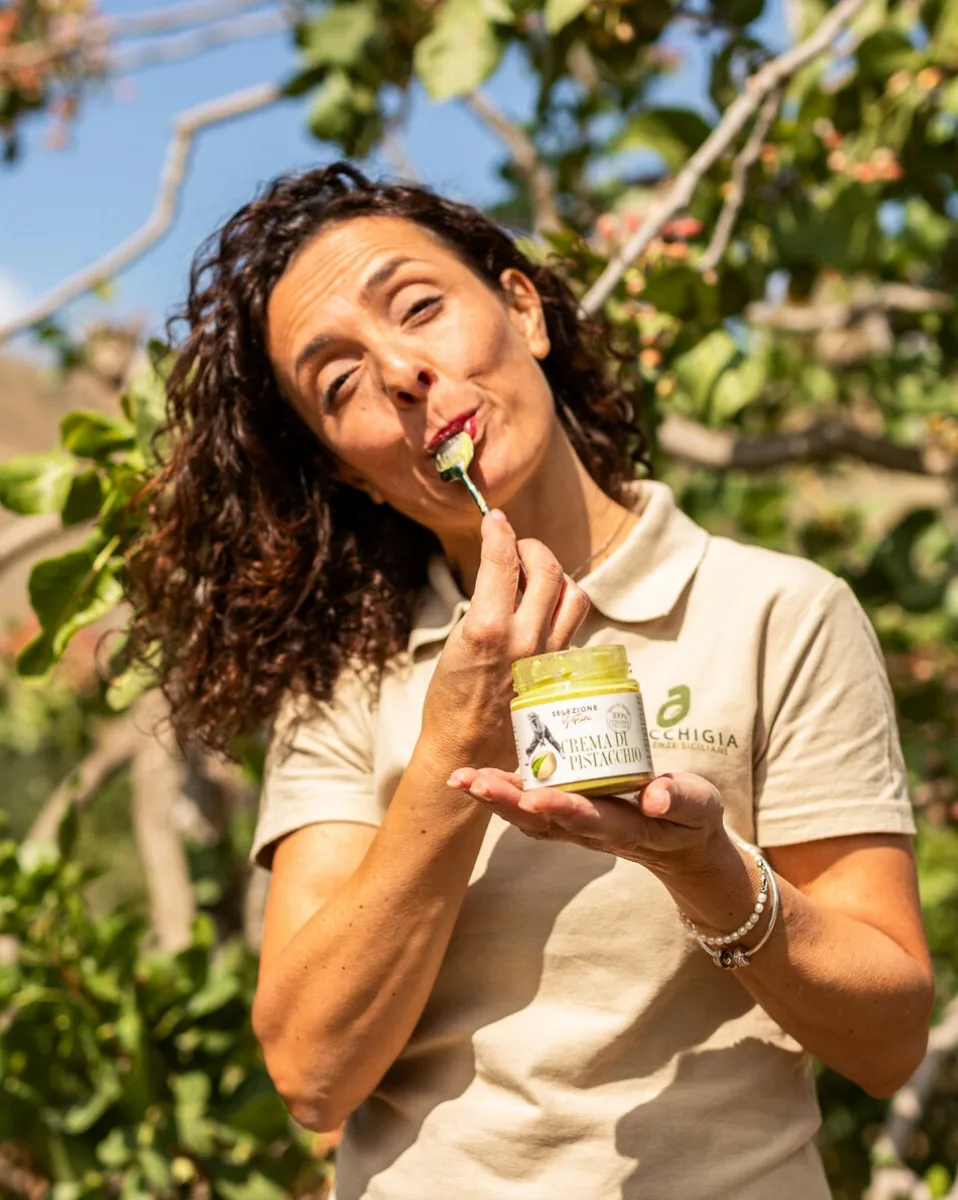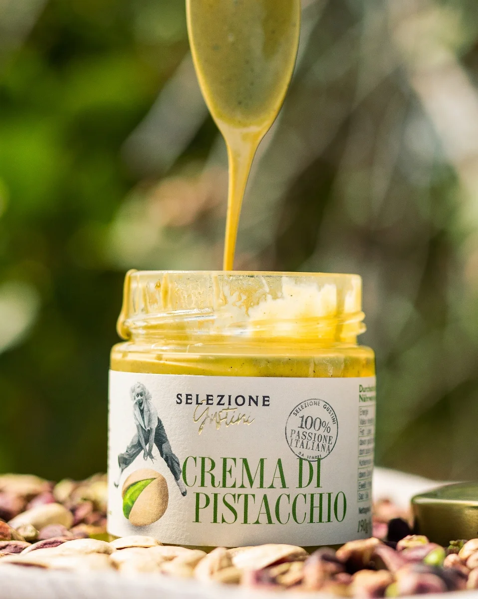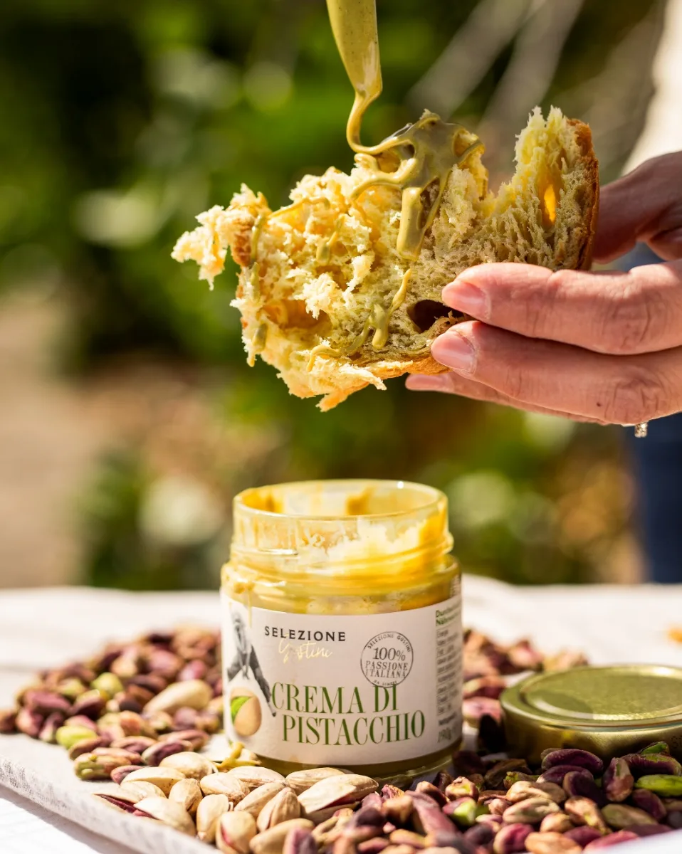 So unglaublich zart zerschmilzt diese himmlische Pistaziencreme butterweich-karamellig auf Deiner Zunge. Am Gaumen entfaltet sich eine angenehme Süße und der feinherbe, würzige Geschmack von frisch geernteten Pistazien.