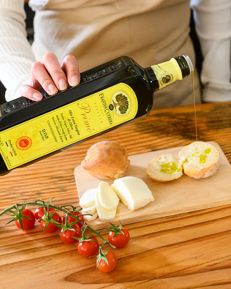 Den Namen Primo (=der Erste) hat es, weil es aus den ersten Oliven der Ernte gewonnen wird. In der Frantoi Cutrera werden hierfür die Oliven ab Ende September geerntet und haben einen sehr niedrigen Ertrag von nur 6-7 %. Andere Oliven ergeben bis zu 20% Olivenöl.