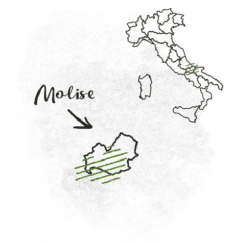 Gekennzeichnet durch ein hügeliges und bewaldetes Land, präsentiert es große landwirtschaftliche und gastronomische Ähnlichkeiten mit seiner Nachbarregion Abruzzen: gleicher Anbau, gleiche Produktion der traditionellen Käse, wie den Classico Pecorino und des Kuh- und Schaffleisches. Auch die molisische Kultur ist wie die abruzzische tief in der Tradition der seit der Antike praktizierten Transhumanz verwurzelt: Im Sommer wird das Vieh auf die Bergweiden getrieben und im Herbst wieder zurück in die Ebene.