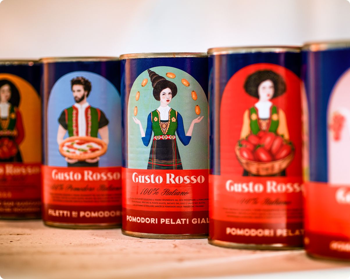 Mit unserer Hausmarke Gusto Rosso bekommst Du die fruchtigsten, aromafrischen Sommertomaten  Süditaliens. Wir wählen dafür sorgfältig die besten Ernten vieler kleiner Tomatenbauern in der Region aus. In unsere Dosen kannt Du neben den klassisch geschälten Pelati-Tomaten auch echte Raritäten bestellen.