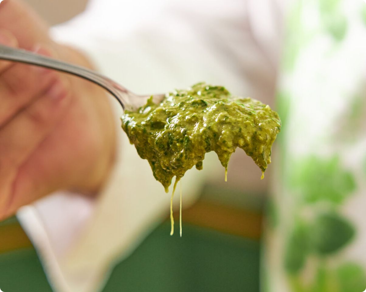Pesto ist der Tausendsassa der italienischen Küche und genial, wenn es mal schnell gehen muss. Verwende es zu Pasta, streiche es aufs Brot, rühre es ins Dressing, serviere es als Dip zu Fleisch, Fisch und Verdure oder gebe es als würziges Topping auf Deine Minestrone.